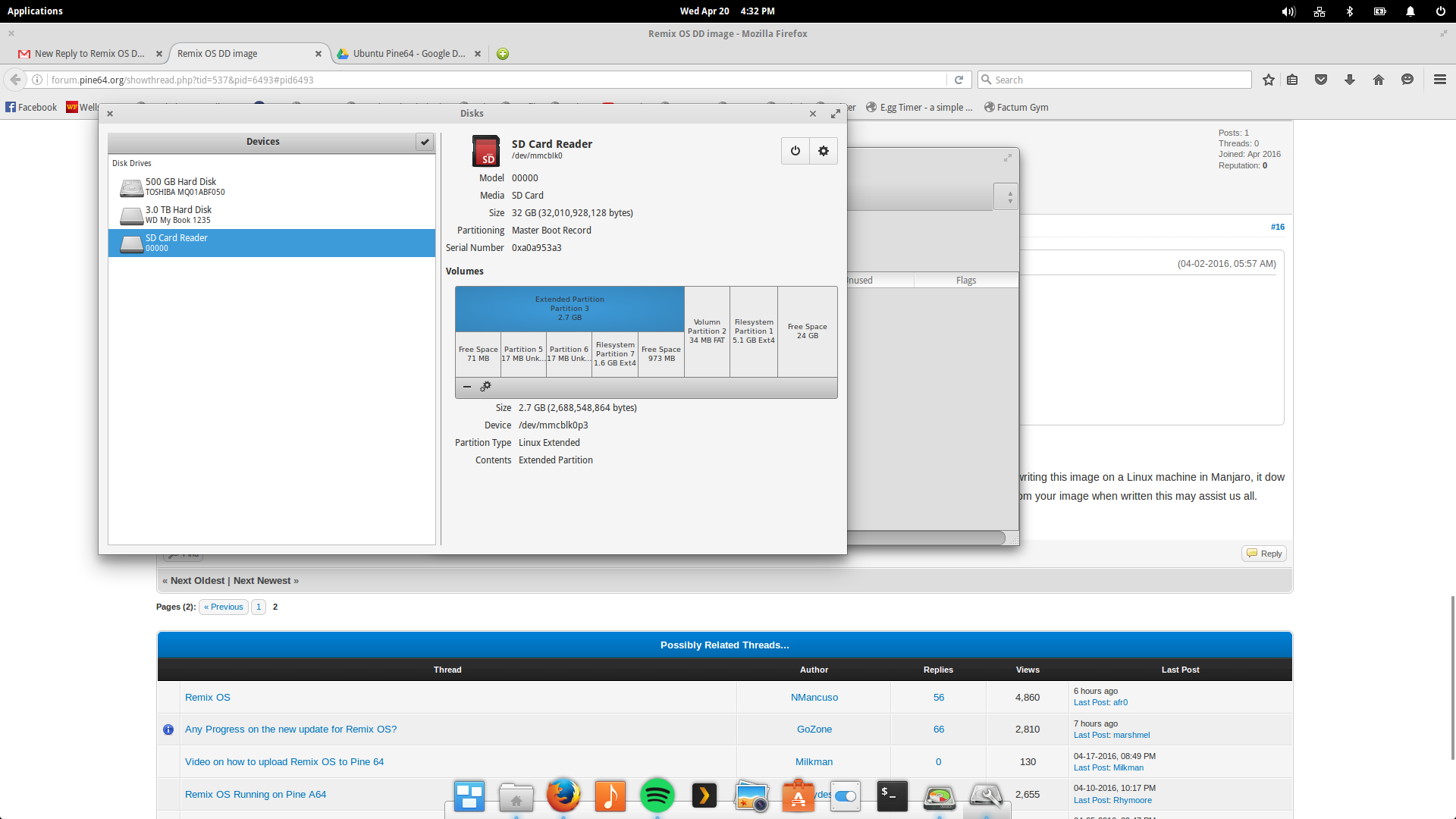 RE: Remix OS DD image - ML-Anderal - 04-02-2016 (04-02-2016, 04:35 PM)drag00n Wrote: I may be wrong but A64+ is gigabit, so the only 100mb board is the 512 mb ram version.. No you are right. I dont understand than why anything would be different from the 1GB board over the 2GB board other than memory. Which should have no affect on disabling the NIC. (04-02-2016, 04:41 PM)aund Wrote: A few other things I've tried: Thanks Aund this could be what they need. I think within the next month before launch and kickstarter ends we will hear about the Remix OS and an update. For anyone with the board I would hold out until than and tell you to disable the NIC. I know this may make your board pointless so I would say install Android or Linux distro and wait until Remix OS has been fixed for the 2GB board. I wish I could give more feedback and test it myself but I ordered a lot with my boards and I probably will not get them until the end of April. RE: Remix OS DD image - ice4790 - 04-02-2016 (04-02-2016, 03:09 PM)ML-Anderal Wrote:(04-02-2016, 02:57 PM)ice4790 Wrote: I have the same issue with the 2GB board. Unfortunately I'm kind of dead in the water because it doesn't detect my wifi adapter either (EdiMax) The EdiMax Wifi does not register on android lollipop but the ethernet hard line does work just fine. RE: Remix OS DD image - arpanj2 - 04-03-2016 I have the wifi supplied via pine team and it works flawlessly with Android image, not the remix one. One issue I see is when I connect to VPN, it shows upload happening with a speed of 100 mega byte per sec. I installed a network speed app which doesn't show that happening, but VPN is showing it continuously. RE: Remix OS DD image - coventrylinuxguy - 04-20-2016 (04-01-2016, 10:57 PM)ML-Anderal Wrote: Here is a DD image for Remix OS for now. heya ML-Anderal, I have just downloaded your image, thanksagain for building it for the masses. I just have one question, the part where you mention to resize if you have a bigger microSD card, and you mention partition 1, what is the standard size for that partition as whilst writing this image on a Linux machine in Manjaro, it dow not show as a partition 1 and I was wondering which specific partion that would be . I dont want to end up resizing the wrong one. if you could post a standard partition table from your image when written this may assist us all. thnaks again.