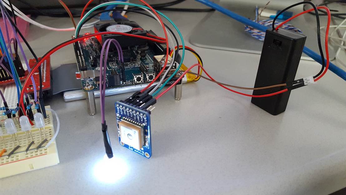 Ada Fruit GPS Ultimate Breakout Board for PineA64 - MarkHaysHarris777 - 08-09-2016 I have been testing the Ada Fruit GPS Ultimate Breakout Board with my PineA64, and have found it to be a very handy device for local GPS, and truly the ultimate breakout board for GPS gurus. The breakout board is in the mid-ground of the pic above. I have the board connected to uart4 (ttyS4) on the PineA64 board, where I am reading and parsing the NMEA sentences from the GPS receiver using Python (codes submitted and explained below). The pinouts for the euler bus may be found here. I use a four color ribbon from the gps module (red 3v3 Vcc, green Tx, white Rx, black Grnd). The red wire plugs into euler bus pin(17) 3v3, the green wire plugs into pin(21), the whire wire plugs into pin(19), and the black wire plugs into pin(25). It is important to note that the Tx line of the module (green) plugs into the Rx pin on the euler bus; the Rx line of the module (white) plugs into the Tx pin of the euler bus. Tx and Rx cross. ( in human terms, your mouth speaks to someone's ear, they listen with their ear to your mouth!). Use the pinouts sheet from the wiki to identify and utilize the uart3 if you like. The codes will need to modified slightly should you decide to use uart3. In the pic below you'll notice that the white wire is missing; that's ok, if you're not going to be sending commands to the gps receiver, and the receiver works very well by default in most cases. The PineA64 lith-ion batt is in the foreground with the LED lab in the background. The pic below is the verso of the breakout board showing the backup batt and holder (which may be optionally soldered in place). I strongly recommend the backup batt (and bracket) because it significantly reduces startup and acquire times... the receiver gets smarter over time, and memorizes GPS sat information as it runs. The pic below is a close-in of the ada fruit ultimate gps breakout board clearly connected to the uart4 (ttyS4) of the PineA64. I have posted the codes below. Again , you'll notice that the white wire (used to send commands to the gps receiver is missing. The cable on the near end of this pic below is the uart0 serial console which runs over to my notebook gnu+linux system and is my interface into this board. The transmit Tx wire green of the serial cable plugs into uart0 pin(8) of the EXP header, the white receiver line Rx plugs into pin(7) of the EXP header , and the black wire (grnd) plugs into pin(9). The codes listed below are a simple Python script that parses the primary NMEA sentences for local display making some sense of the otherwise cryptic messages typically received by any GPS receiver. The code has been tested on gnu+linux (lennyraposo debian mate) and displays latitude, longitude, time, date, altitude, and satellite position for fixing sats. The codes should be run as root; while they are intended to get a person started, they may not be robust enough for direct application , and may or may not be suitable for a particular purpose. ada_fruit_GPS4.sh Code: #!/usr/bin/pythonrun with : sudo ./ada_fruit_gps4.sh The breakout board will flash once every second until a fix is established; thereafter it will flash once every fifteen seconds. The codes listed above will work with other GPS receivers, but may need to be modified for display depending on the order of NMEA sentences the GPS receiver provides and how often the receiver updates the GSV sentences; which are updated by the ada fruit breakout every five cycles (or every five seconds). RE: Ada Fruit GPS Ultimate Breakout Board for PineA64 - KnReLe - 08-22-2016 I saw this thread, and thought I'd try the same. For reference, in case anyone else wants to try this, I am running the Linux 3.10.102-2-pine64-longsleep #66 kernel here. Indeed everything works right away with an unmodified Adafruit Ultimate GPS HAT plugged into the PI-2-BUS connector. I get all the GPxxx strings coming in on /dev/ttyS2, the serial port on the PI-2-BUS pins 8 and 10. Now, I've found that the gpsd daemon makes it easier to deal with the output from the gps receiver, since it collates all the bits and pieces of information in the various GPxxx messages into one common data area, from which we can read the time and where we are and where we are going, all in one go. So I installed gpsd, its clients and client development packages: apt-get install gpsd gpsd-clients libgps21 libgps-dev and had it almost going. Since the gpsd daemon has to be told to read from /dev/ttyS2, there is a setting in a file /etc/default/gpsd for this, DEVICES="/dev/ttyS2" and now client programs like cgps and others work as expected. The Adafruit Ultimate GPS HAT has a 1 pulse-per-second signal connected to PI-2-BUS pin 7, which is PL10 or GPIO362, which might be used by the kernel if it supports 1pps for timekeeping with NTP. RE: Ada Fruit GPS Ultimate Breakout Board for PineA64 - DonFL - 08-22-2016 Did similar with a Dragino LoRa/GPS hat (http://wiki.dragino.com/index.php?title=Lora/GPS_HAT#What_is_the_Lora.2FGPS_HAT), found gpsd and cgps to be an easy way to get the GPS side up and running. And, of course, it works with Marcus' code as well with the same serial port tweak. Now I just need to find some free time to get the LoRa side of the board working with the Pine. RE: Ada Fruit GPS Ultimate Breakout Board for PineA64 - pfeerick - 08-27-2016 Nice writeup Mark. Can you sticky this thread also, as it shows the serial bus being used. Can you also edit it to indicate which pins you've connected the GPS to... I've having to guess that you plugged the GPS TX into Pin 10, etc... And you wouldn't want me to blow up a GPS module now, would you?