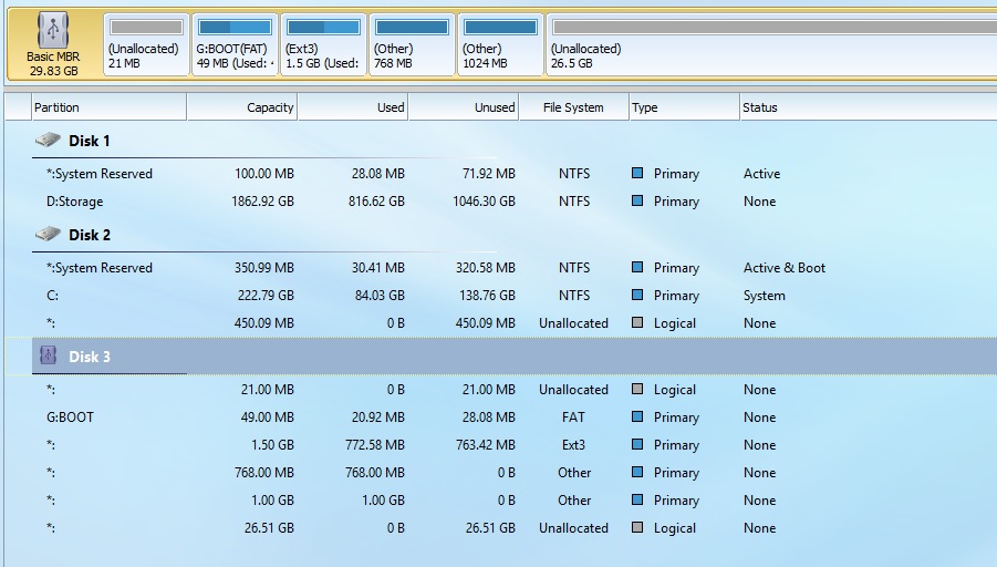 Obviously I can try to change the unallocated to Ext 4 but I'm wondering if that is correct. Also can I combine it with the 2 "Others"? I added a screenshot of minitool.