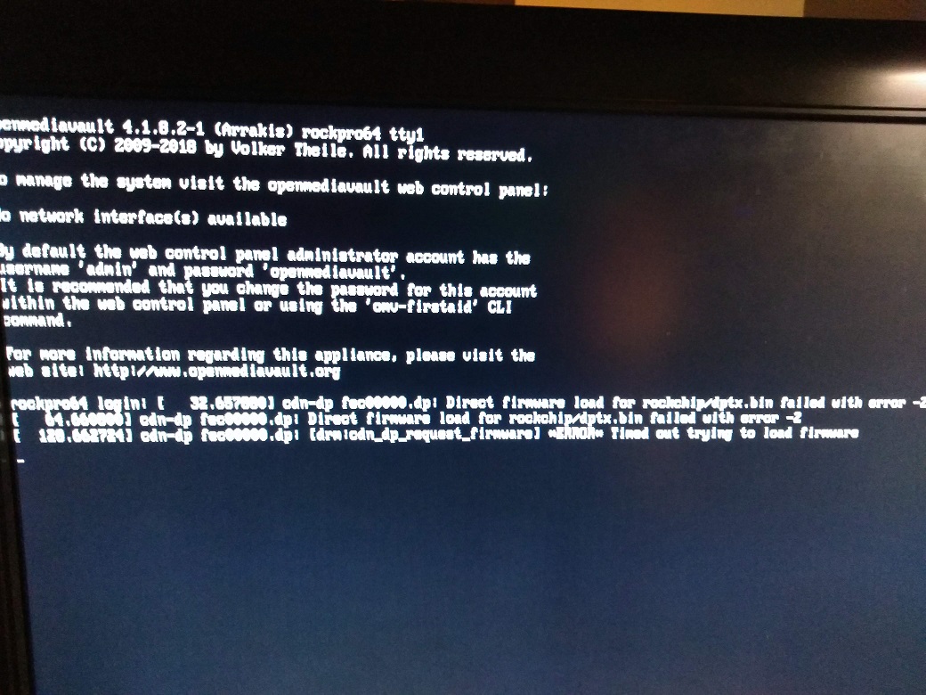 http://wiki.pine64.org/index.php/ROCK64_Software_Release#Stretch_OpenMediaVault_OS_Image_arm64_.5BmicroSD_.2F_eMMC_Boot.5D_.5B0.7.8.5DClicking the download link revealed (either because it's an old link, or because it's the version that is known to work) that it downloaded version 0.7.8 instead of the 0.7.9 I had already.