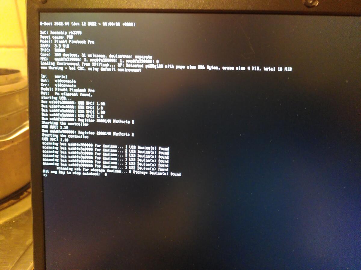 First, I interrupted the boot process on the old PBP, and I get a prompt in u-boot. Maybe there is something I can do at this point to get Tow Boot (from the SD card) installed to SPI?