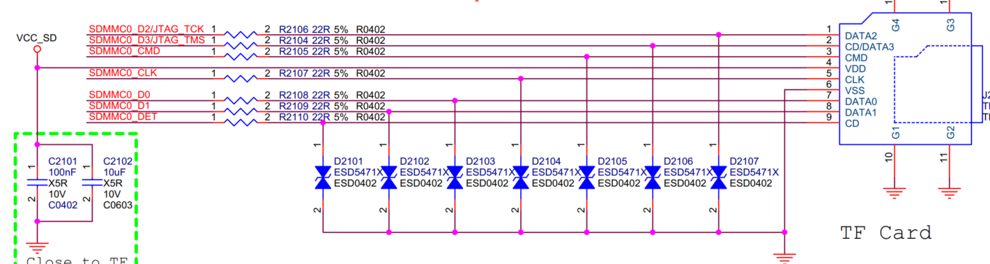 here are a couple clips of the vcc out of the pmic to the tf [sdcard] one is the 3328 the other is the 3399. you should be able to notice that the 808 on the 3399 sends 1.8-3.3v, on the other hand the 805 of the 3328 sends just 3.3v as remarked in the box in the upper right corner.