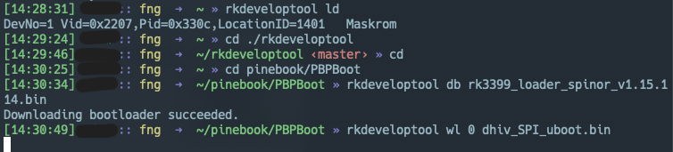 rkdeveloptool db rk3399_loader_spinor_v1.15.114.bin