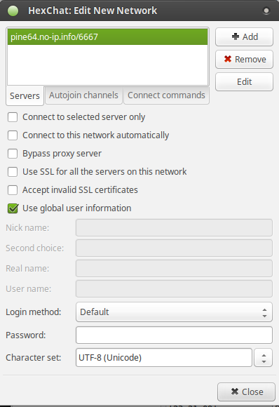 (05-01-2016, 08:11 AM)clarkss12 Wrote: I have subscribed to your IRC channel, #pine64.no-ip.info using the Hexchat app on my Windows 7 machine more that a week ago. I am the only person that shows up. Perhaps I am doing something wrong. Here is the information for my chat session.