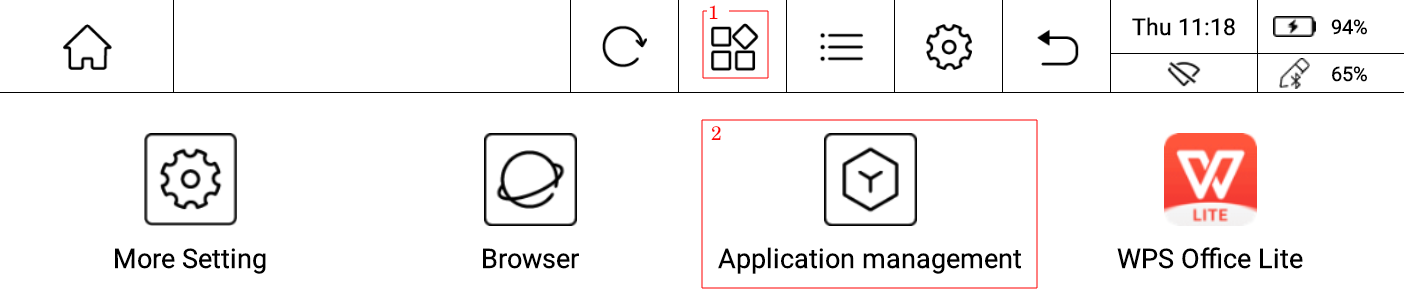 To start with, open up the app list, highlighted as 1, then open application management.