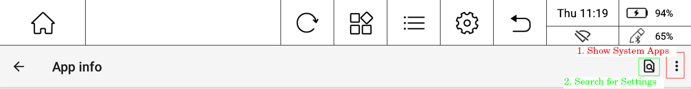 The Android that ships on the PineNote is pretty impressive at showing off the eInk panel on the device, so it's tempting to play around with, but getting past the settings built into EngLauncher, the Home App/Launcher isn't the most straight forward.  This android settings are useful if you'd like to get ADB up, or any other settings that aren't exposed via EngLauncher.