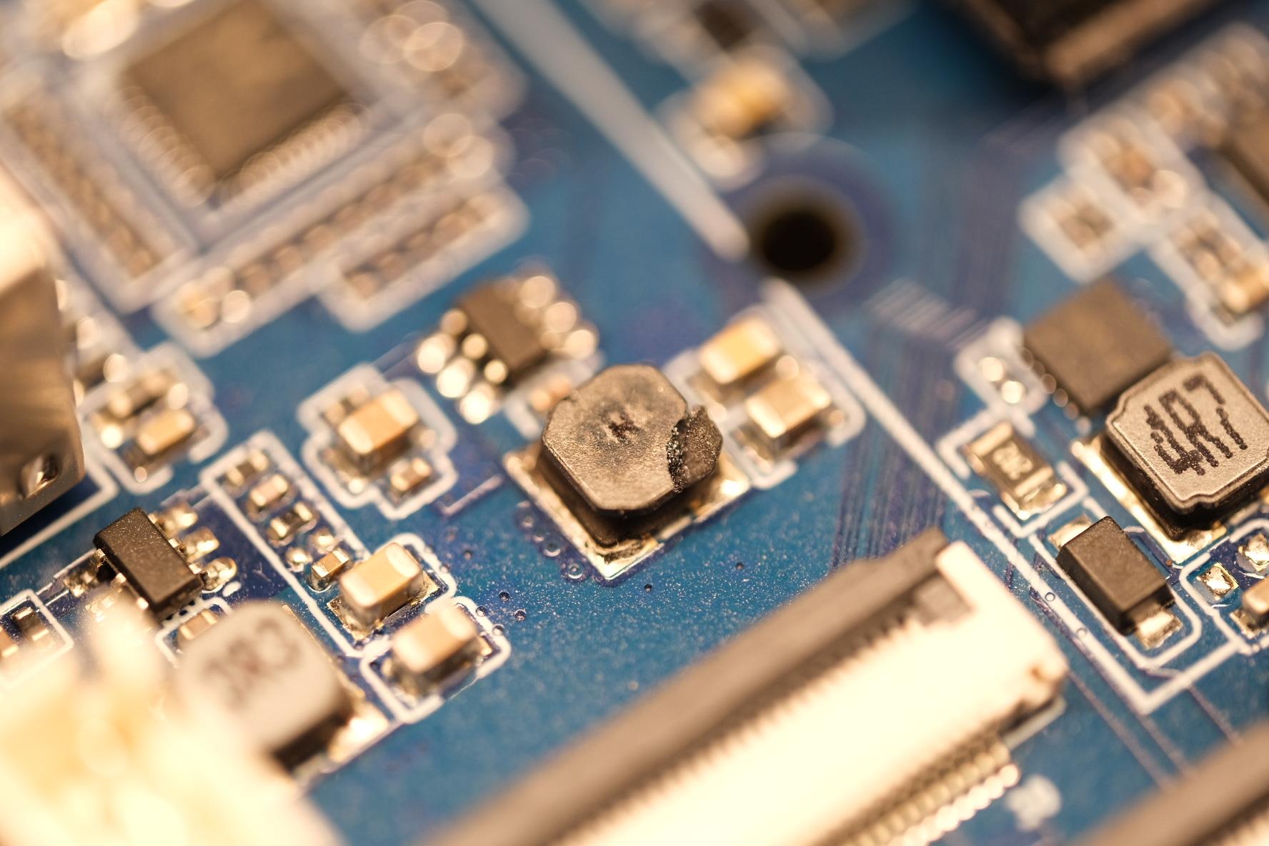 I suspect this to be L9 or L10 from the schematics. I'll try to find someone who can help me replace that sucker. Before that, there's probably little sense in trying to resolve the other issue.