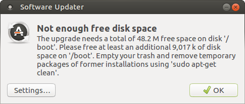 But Ubuntu tells me there isn't enough space on /boot to do the updates.