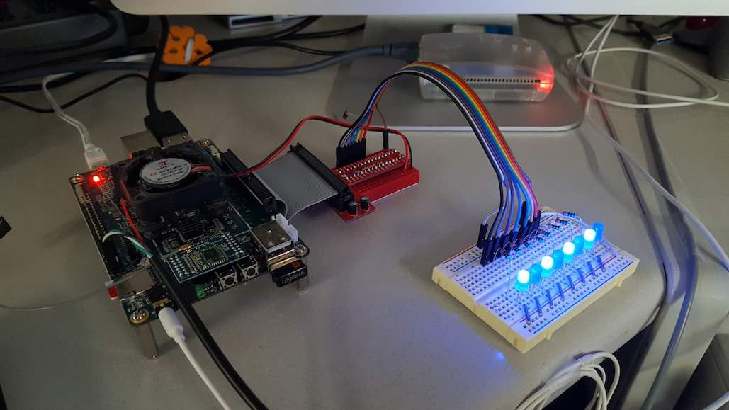 I have reworked my LED lab specifically for the PineA64 board demo codes (uploaded here) which highlight the RPi.GPIO-PineA64 module from github; as well the Sparkfun T cobbler breakout board and 40pin ribbon cable.