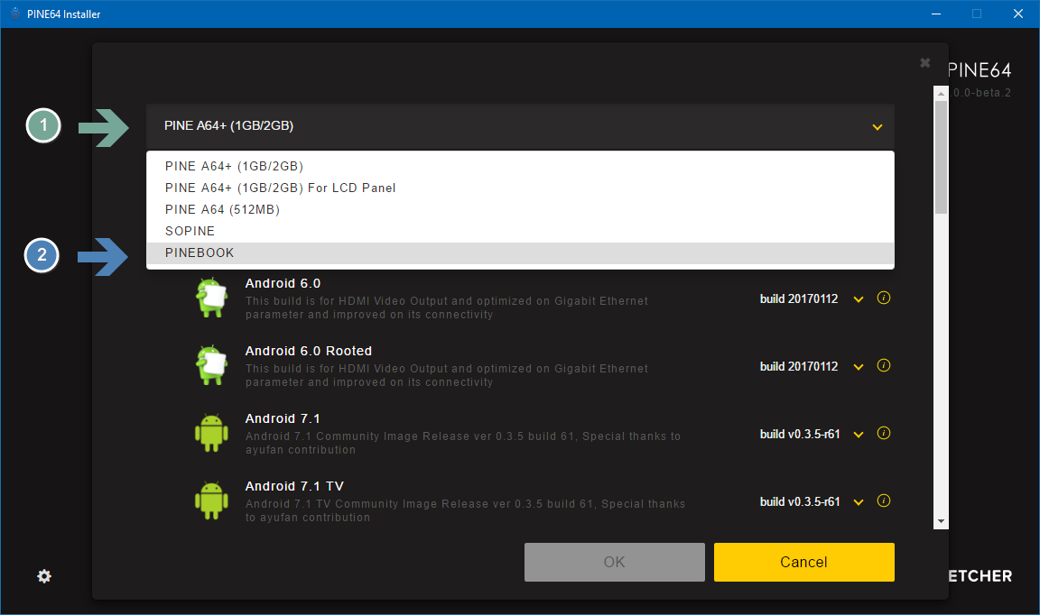 "Did you make sure that you choose pinebook from the drop-down menu at the top?"