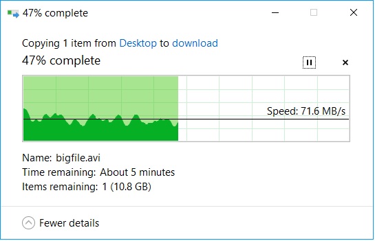 1073741824 bytes (1.1 GB) copied, 6.32938 s, 170 MB/s