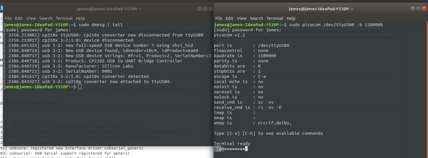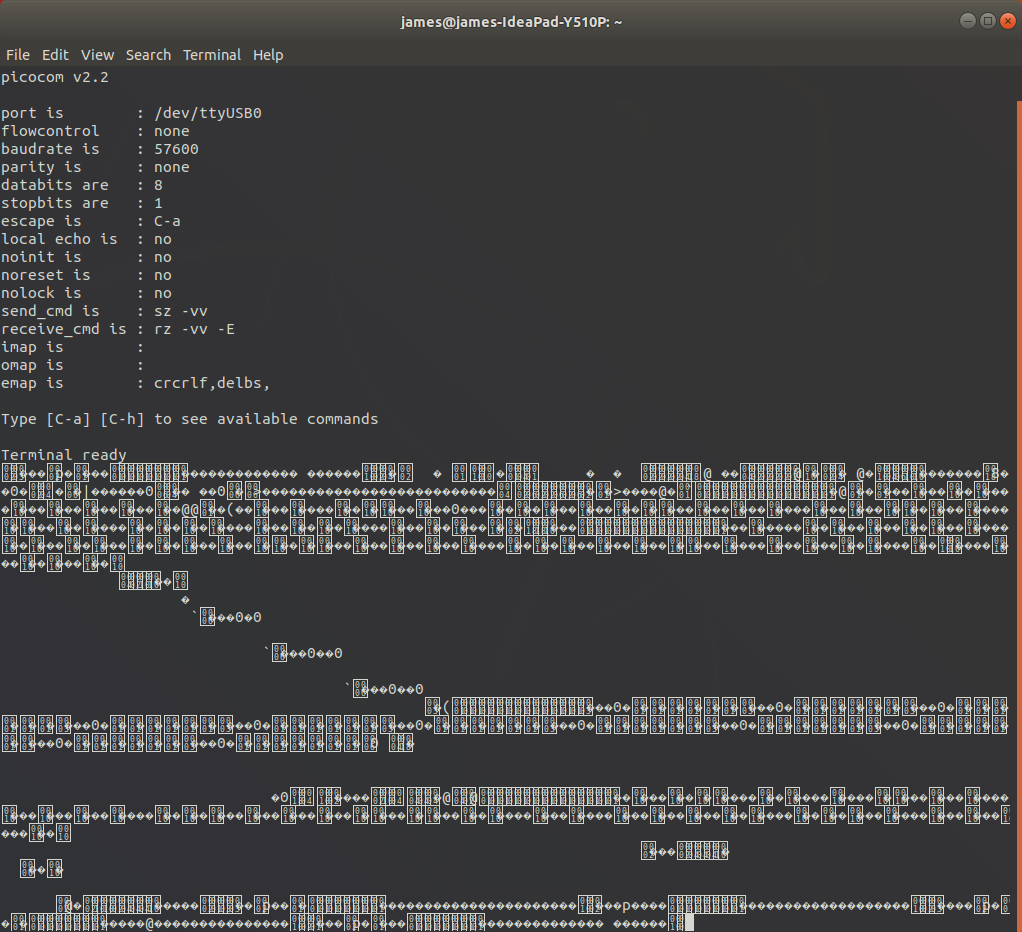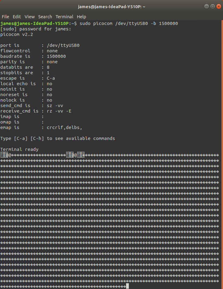 When the commands that were listed in the linked wiki article were run the results are shown in images 1 and 2 (attached). To be honest, this seemed to be way too few output lines. Even if I got the baud rate incorrect (which would lead to gibberish like what is seen, or at least somewhat similar), there should be way more lines as the system starts up. Not promising. Just in case, should the Baud rate be 1500000 or another number?