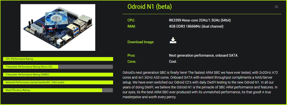 (09-11-2018, 01:37 AM)romtorwator Wrote: Interestingly, due to which the Odroid-N1 has higher performance in the rating DietPi?
