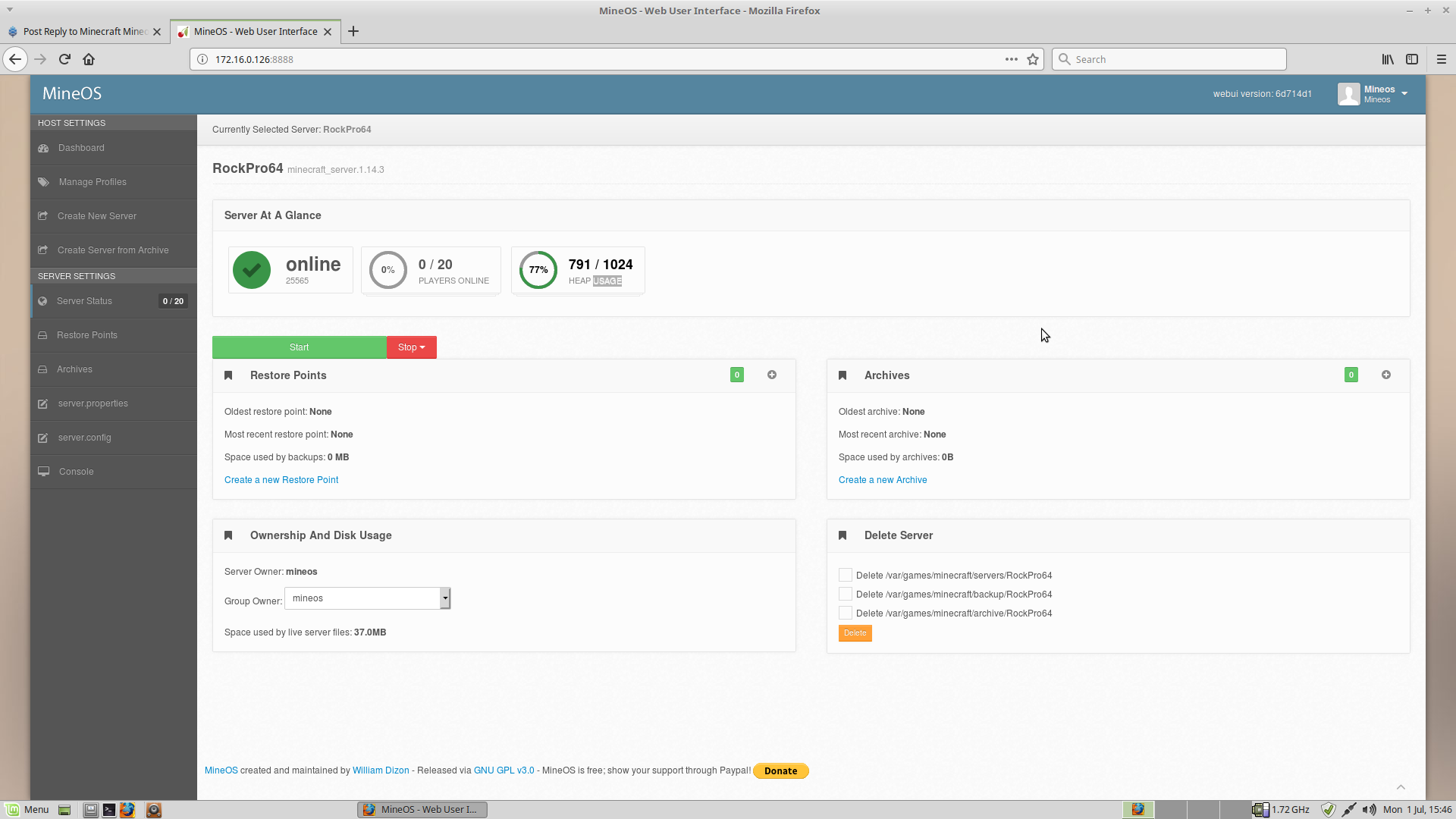 Finally I have Mineos running Minecraft servers on the RockPro64 Smile