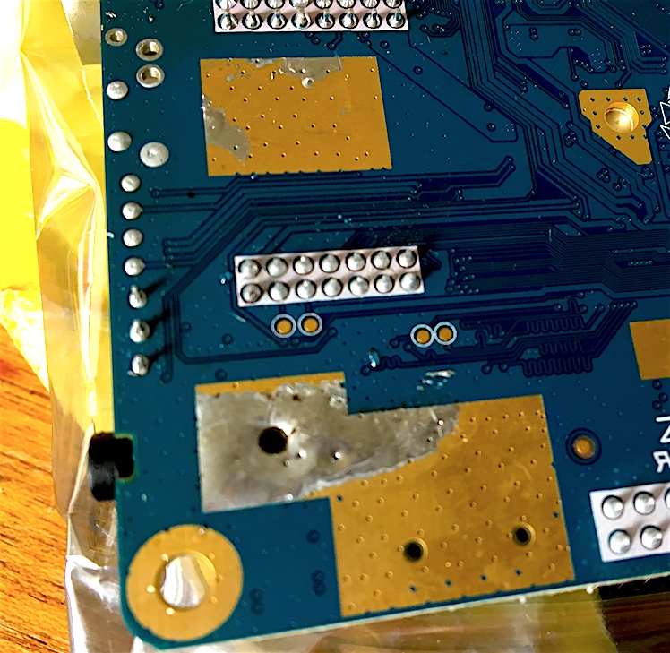 It's poor finishing but if the areas we can see in the photo are the only ones with excess solder then it shouldn't cause you any issues. It's mostly on parts of the ground plane and doesn't seem to be bridging any pins. The board will surely have been powered on already during factory tests.