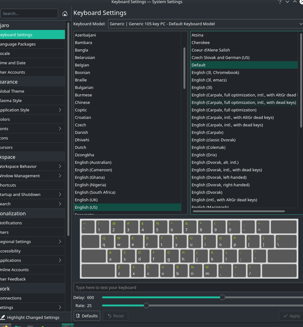 (11-05-2020, 03:57 AM)FeMike Wrote:It was set to UK out of the box. I don't think I set it to UK when I did initial setup. It still isn't saving the settings after power down.(11-02-2020, 06:00 PM)motezart Wrote:(10-30-2020, 01:24 PM)FeMike Wrote:Hey, how do I delete it? I've right clicked. I can't see any way to do it.(10-30-2020, 10:47 AM)motezart Wrote: Every time I start up the pbp the keyboard switches back to the default UK English, when I want US English. I have to manually switch it to US everytime. How I can make it save the setting? And yes, I hit apply.When you are in that settings page, after selecting us eng then delete the uk eng. I believe that should fix it. Let me know if that works. (11-10-2020, 02:44 PM)motezart Wrote:After you select your desired keyboard, click on the one you don't want and the delete button should now be active. I also noticed that if I have 2 or more keyboard layouts it allows you to move them up or down in the list, I wonder if when it boots it looks for the first one in the list to default to. Try moving the us to the top of list and reboot to see if it sticks before you delete the uk one.(11-05-2020, 03:57 AM)FeMike Wrote:It was set to UK out of the box. I don't think I set it to UK when I did initial setup. It still isn't saving the settings after power down.(11-02-2020, 06:00 PM)motezart Wrote:(10-30-2020, 01:24 PM)FeMike Wrote:Hey, how do I delete it? I've right clicked. I can't see any way to do it.(10-30-2020, 10:47 AM)motezart Wrote: Every time I start up the pbp the keyboard switches back to the default UK English, when I want US English. I have to manually switch it to US everytime. How I can make it save the setting? And yes, I hit apply.When you are in that settings page, after selecting us eng then delete the uk eng. I believe that should fix it. Let me know if that works. Edit: After selecting a new keyboard and moving it to the top of the list I can confirm that the layout that is at the top of the list will be persistent across reboots. So I would add you us keyboard and move it to the top and you'll be good to go. |