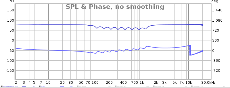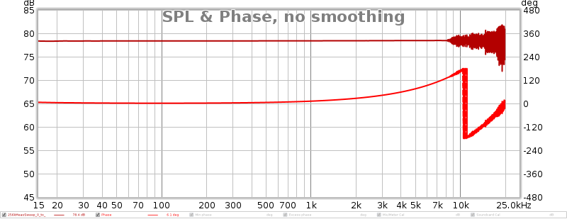 Here you can clearly see the dips in the 100-1k range and noise in the 10k-20k range. Phase looks all kinds of weird as well.
