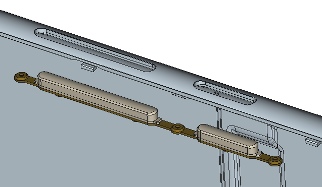 The buttons are fastened onto a thin long flexible strip. This strip seems to snap on three very tiny pins molded into the case. The strip and buttons may be salvageable, but I'm not sure how the pins to hold the strip in place would print out.