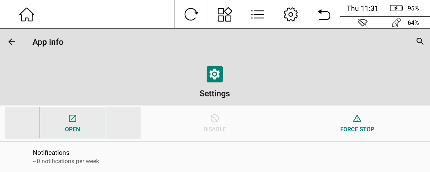 The Android that ships on the PineNote is pretty impressive at showing off the eInk panel on the device, so it's tempting to play around with, but getting past the settings built into EngLauncher, the Home App/Launcher isn't the most straight forward. This android settings are useful if you'd like to get ADB up, or any other settings that aren't exposed via EngLauncher.