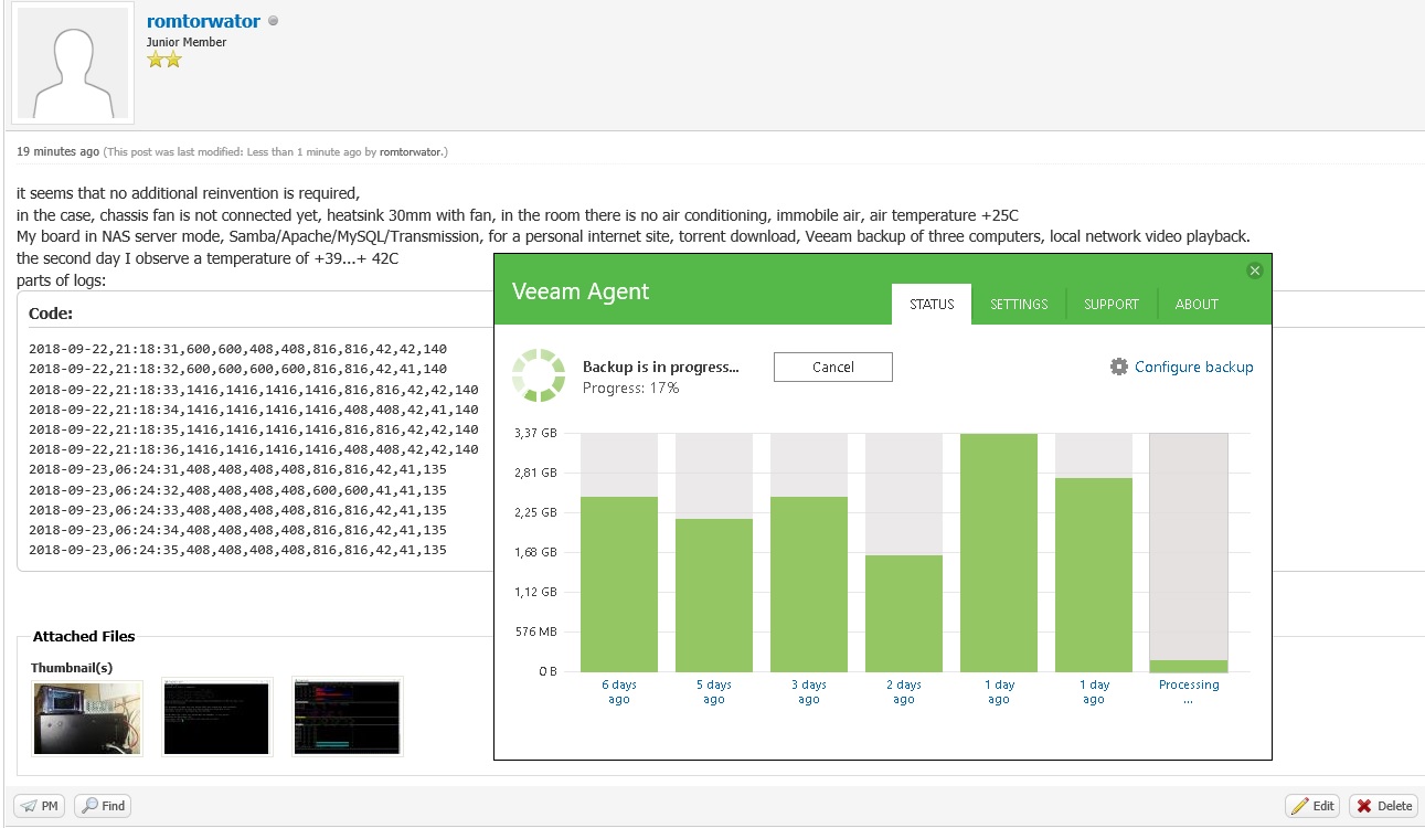 My board in SOHO NAS server mode, Samba/NFS/Apache/MySQL/Transmission/OpenVPN,