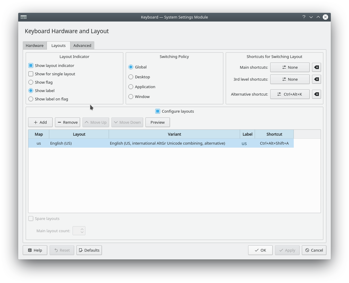 Variant: English (US, international AltGr Unicode combining, alternative)