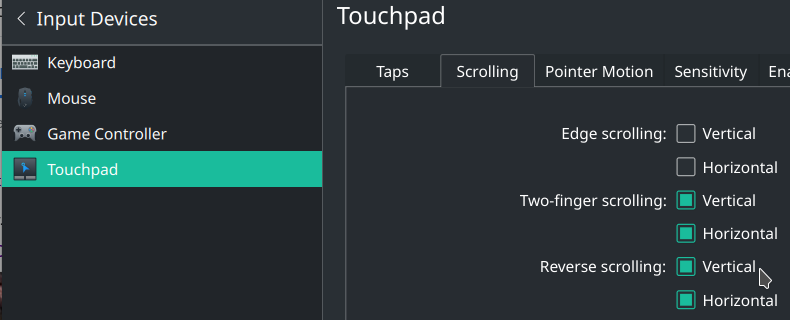 Two-fingered scrolling is working fine, but is there a way that I can reverse the direction (natural scrolling) in KDE Neon?