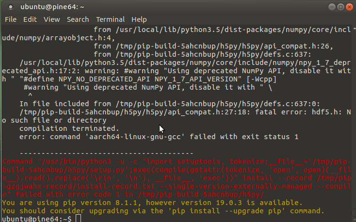 I am trying to install tensorflow 1.12 on my PINE A64+LTS board