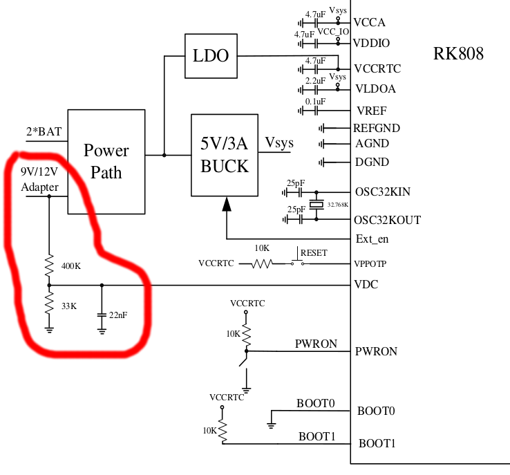 Here are the diagrams of power on at pin 34 of RK808 power management system.