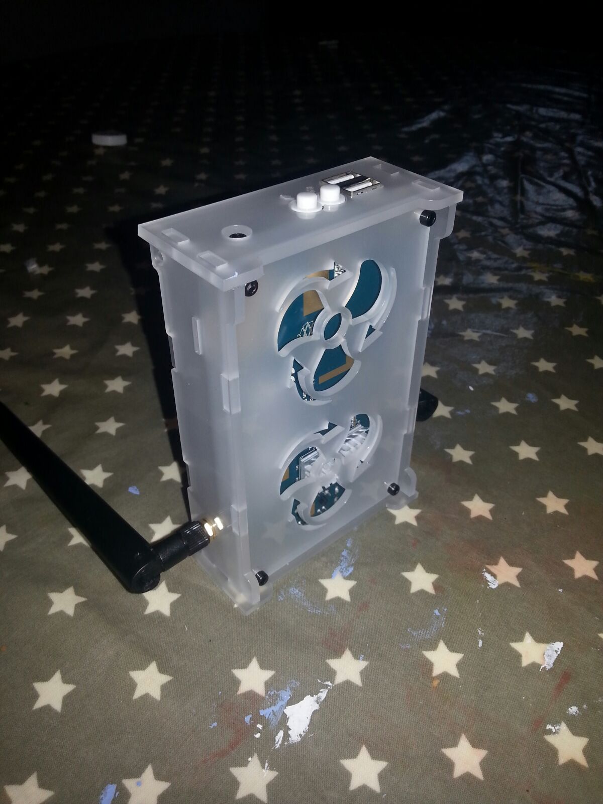 Nicely done Tarjei, and I like the look with the antennas, too! How did you do your own splitter? It appears to be hidden below the WiFi module. Was that pretty simple to do? Thanks.