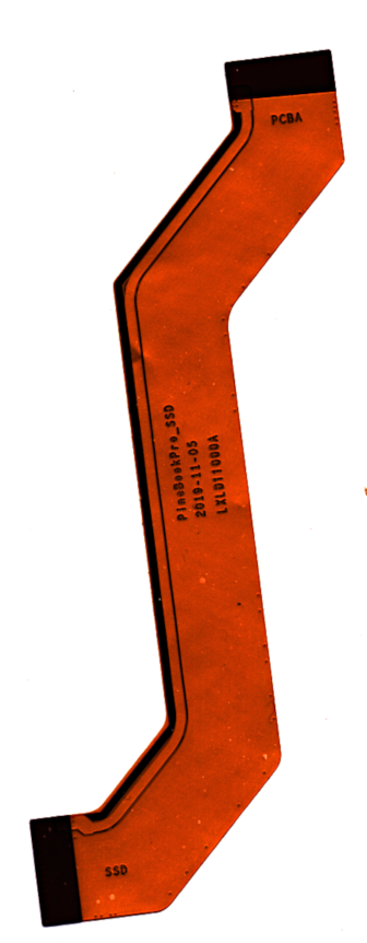 Which cable, hmm. LXLD11000A dated 2019-11-05. It's flexboard, foil on a flexible plastic strip, not a real cable with wires. I might scan it on a flatbed, it's sort of interesting. Double row of contacts on each end, about 3-3/4 inches long.